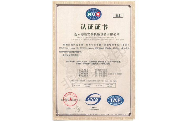 資信等級證書裝車鶴管適用于汽、煤、柴油,液態(tài)化工介質(zhì)汽車、頂部裝卸車。裝車鶴管可以分為三類,分別是:全自動鶴管、氣動帶手動鶴管、手動鶴管。裝車鶴管還有三個特殊功能,分別是:氣相回收,伴熱保溫,變形產(chǎn)品。 鶴管操作規(guī)則流程: a.鶴管在裝車前,操作人員需要對油庫油臺設(shè)施的完好性進行檢查,檢查靜電接地線,確保油車主梁上緊固有效。 b.靜電接地線應(yīng)在卸油前連接好;按規(guī)定做好穩(wěn)油靜置工作 c.將溢油探頭放至油缸口安全高度位置 d.在鶴管裝卸油結(jié)束后,需將尾管里的余油、氣體排空后才能提出放置原來位置。<了解詳情>